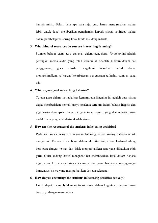 Thesis A Descriptive Study On The Problems Of Teaching Listening On