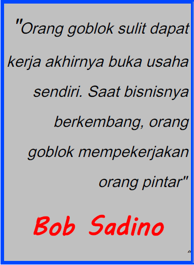 Kata kata bijak bob sadino. Kumpulan kata bijak bob sadino untuk motivasi dalam dunia bisnis yang penuh pesaing. Kata kata mutiara bob sadino orang pintar cenderung punya banyak ide bahkan terlalu banyak sampai tidak ada satupun yang jadi kenyataan.